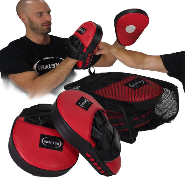 Krausko Punching Mitts are an incredible tool for football players who want to improve hand speed and accuracy. The mitts have a red design with a white center on the palm for aiming.