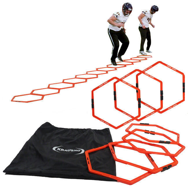 Krausko Agility Hexes are exactly what you need for indoor and outdoor ladder exercise. Our hexes can be arranged in any layout, so get started with unique training drills! Arrange hexes in a traditional speed drill pattern or set up spots on the field for players to avoid. The possibilities are only limited by your imagination.